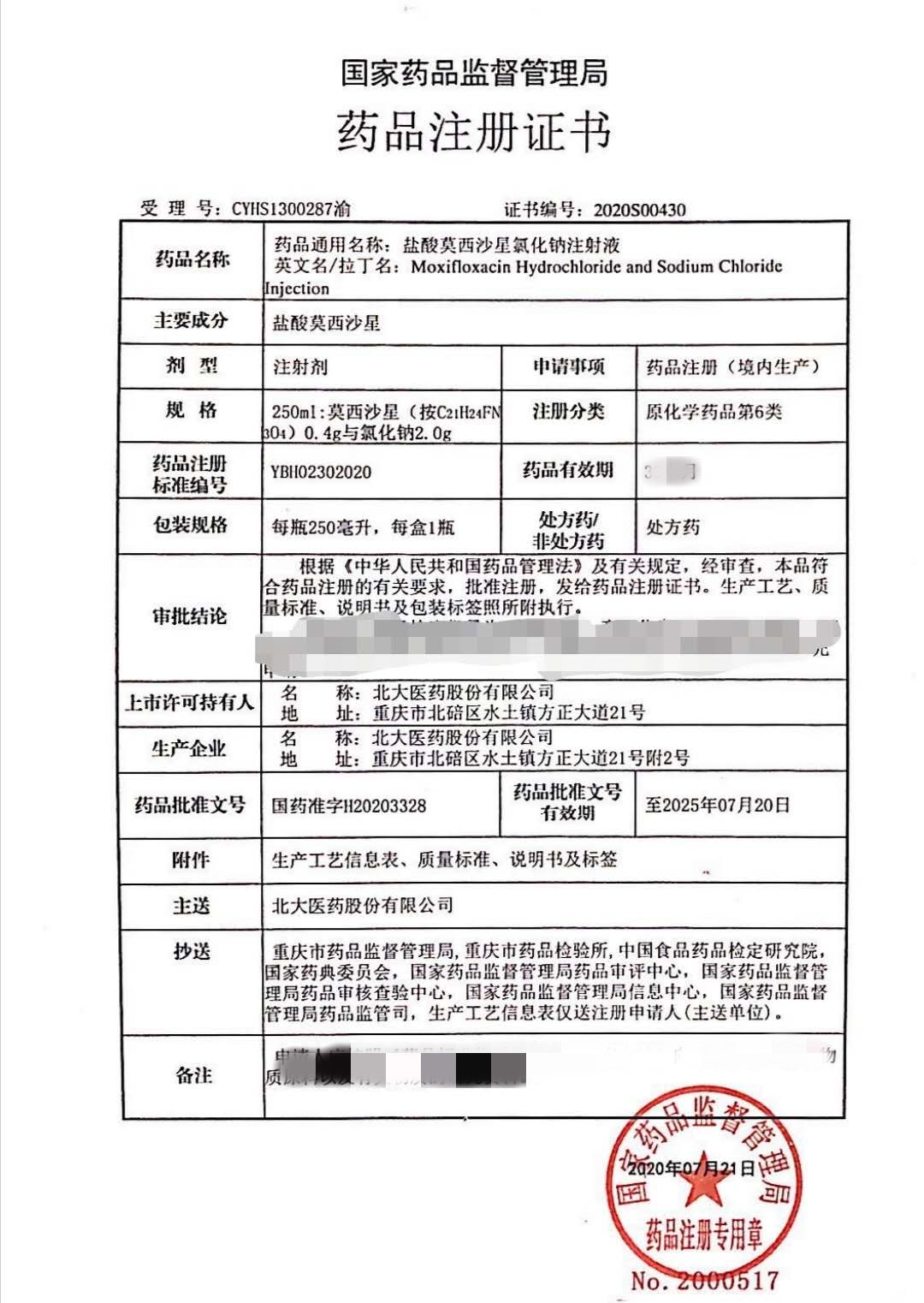 克日,中欧体育医药收到国家药品监视管理局批准签发的“盐酸莫西沙星氯化钠注射液”药品注册证书,再一次用汗水与辛勤收获了一枚丰收的“果实”。
